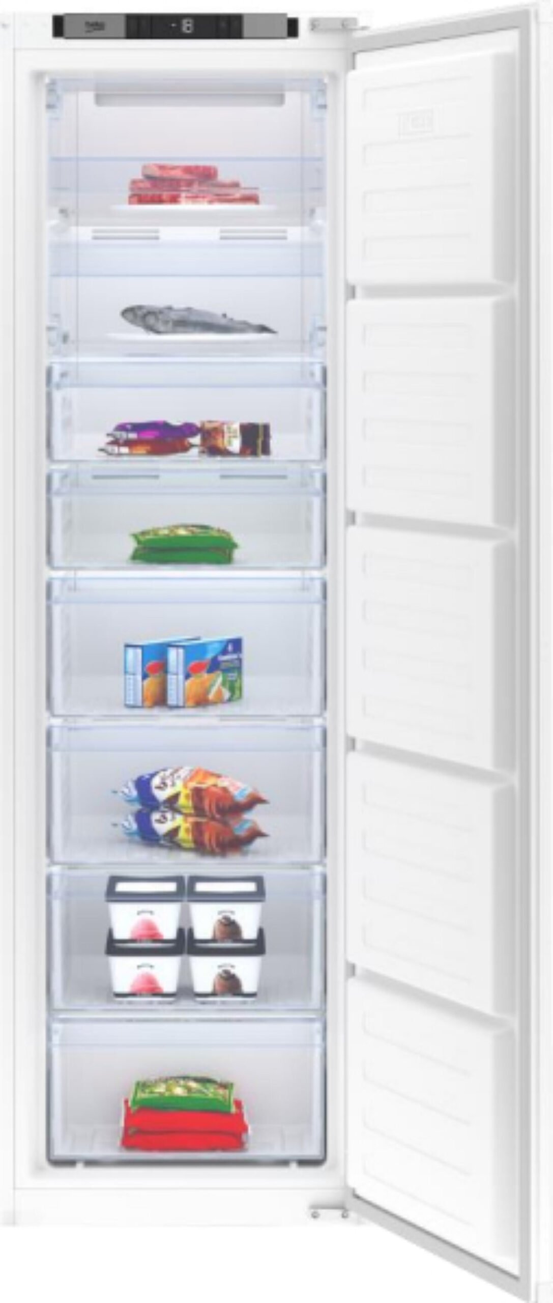 L’écran LCD vous permet de visualiser et de gérer le fonctionnement de votre congélateur: température, congélation rapide ou mode éco sont facilement réglables.
