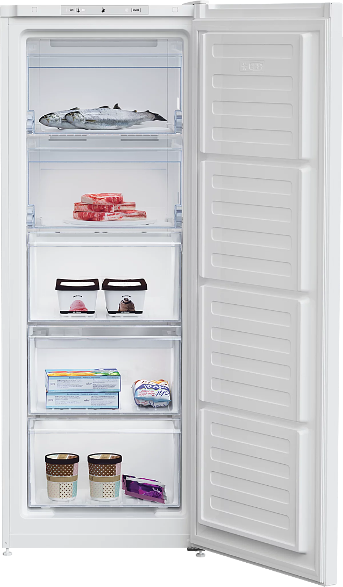 RFNM200T40WN – congélateur armoire 177 L, froid ventilé, No Frost, porte réversible, 3 tiroirs, 2 abattants, mode congélation rapide, alarme de porte ouverte, coloris blanc